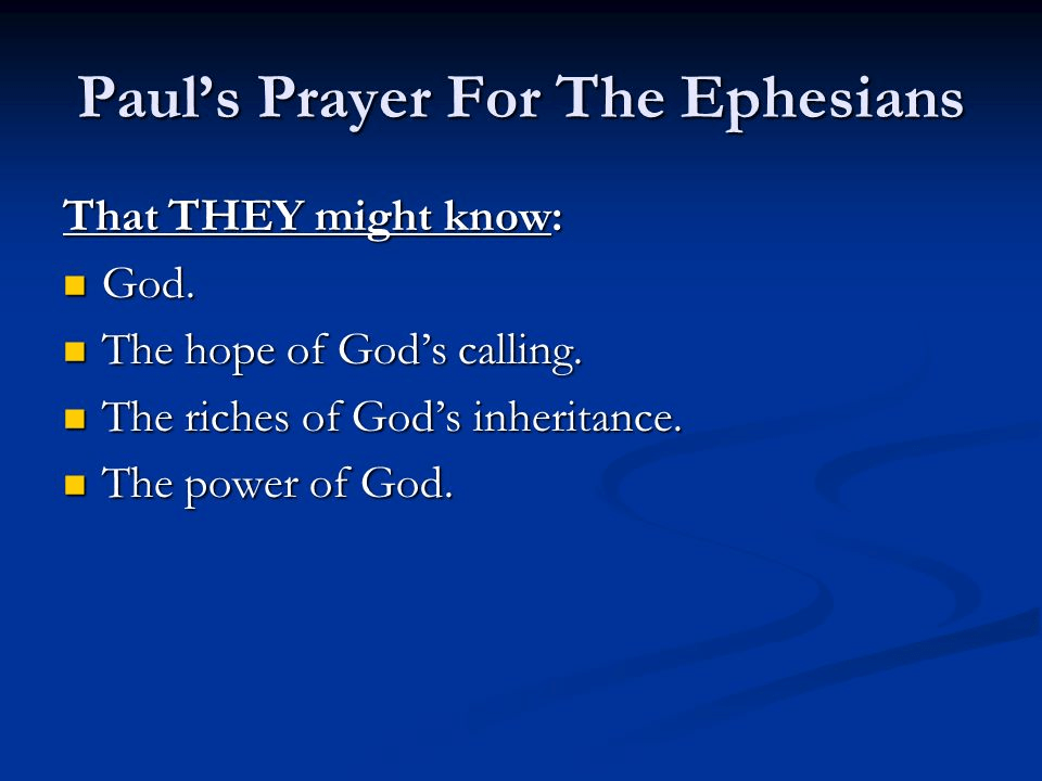 He give these thanks in unceasing prayer and also prays that God will give them the “Spirit of revelation and wisdom and knowledge of him” having “their eyes enlightened to know 3 things: