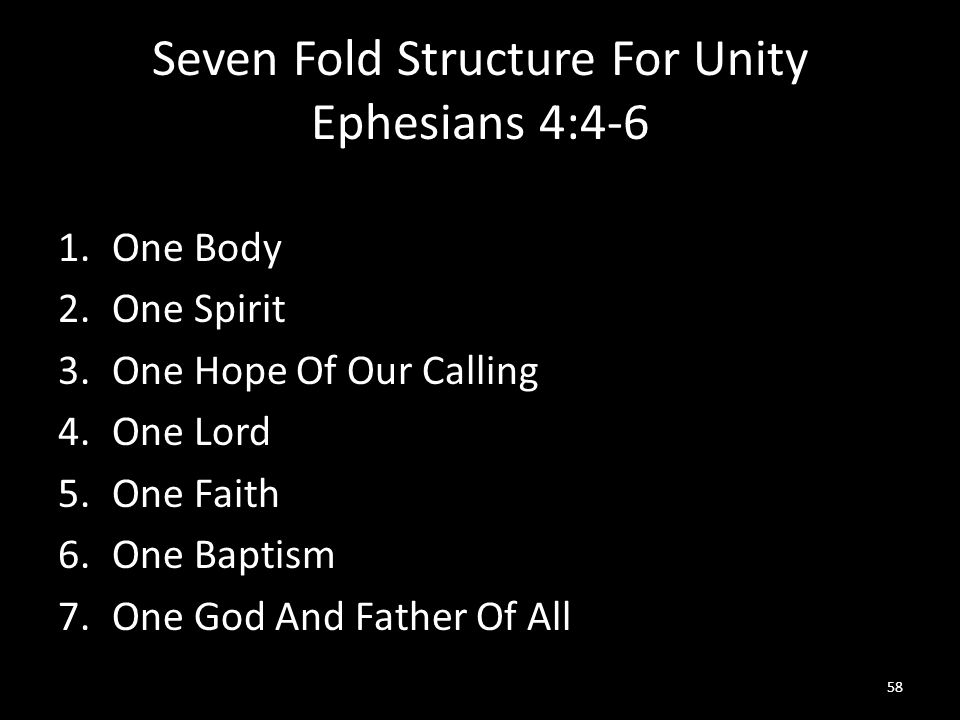 Paul then goes on to give the 7 doctrinal truths that are necessary to have “unity”. Hindus could have all the qualities in 4:1-3 and be united as Hindus, but that would not be unity in Christ. There are 7 basic doctrines and beliefs that we must have to really have Christian unity.