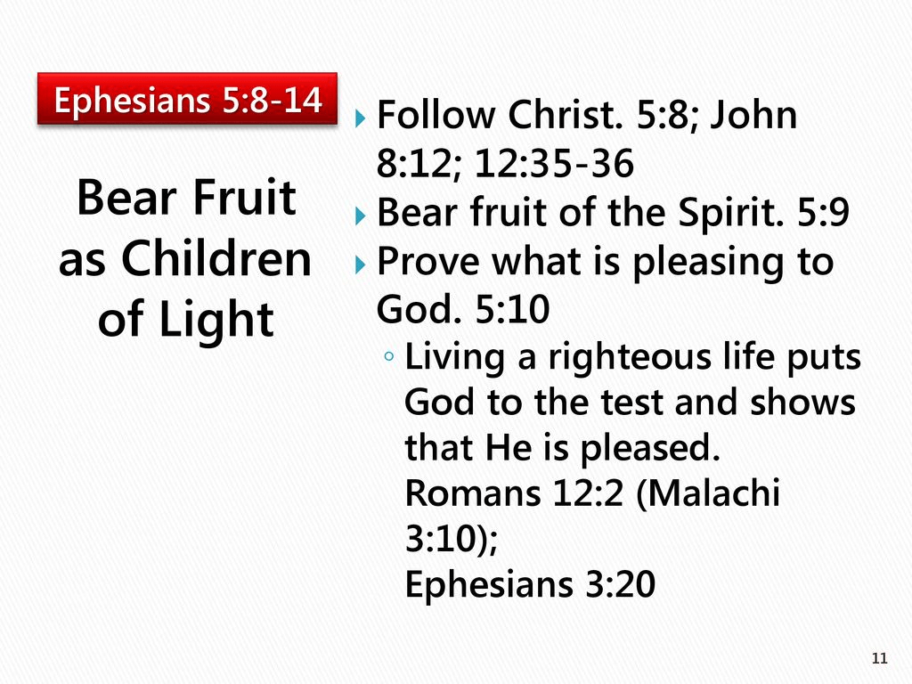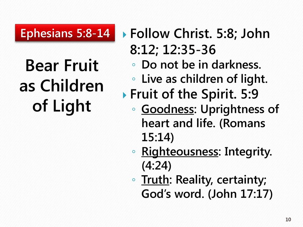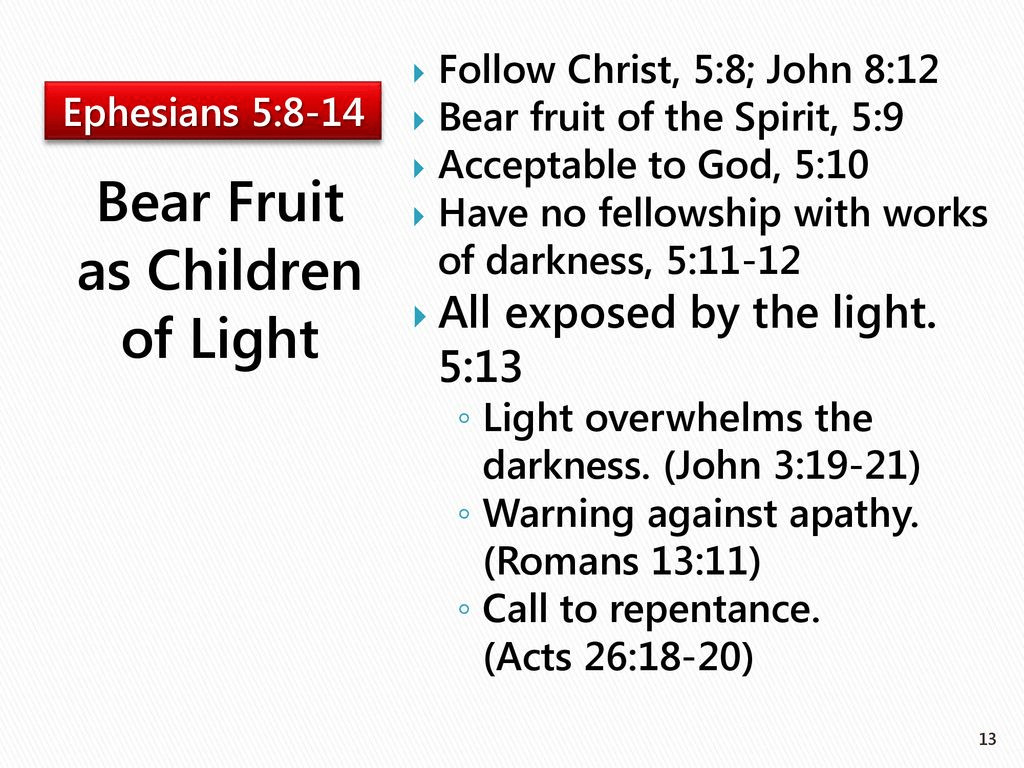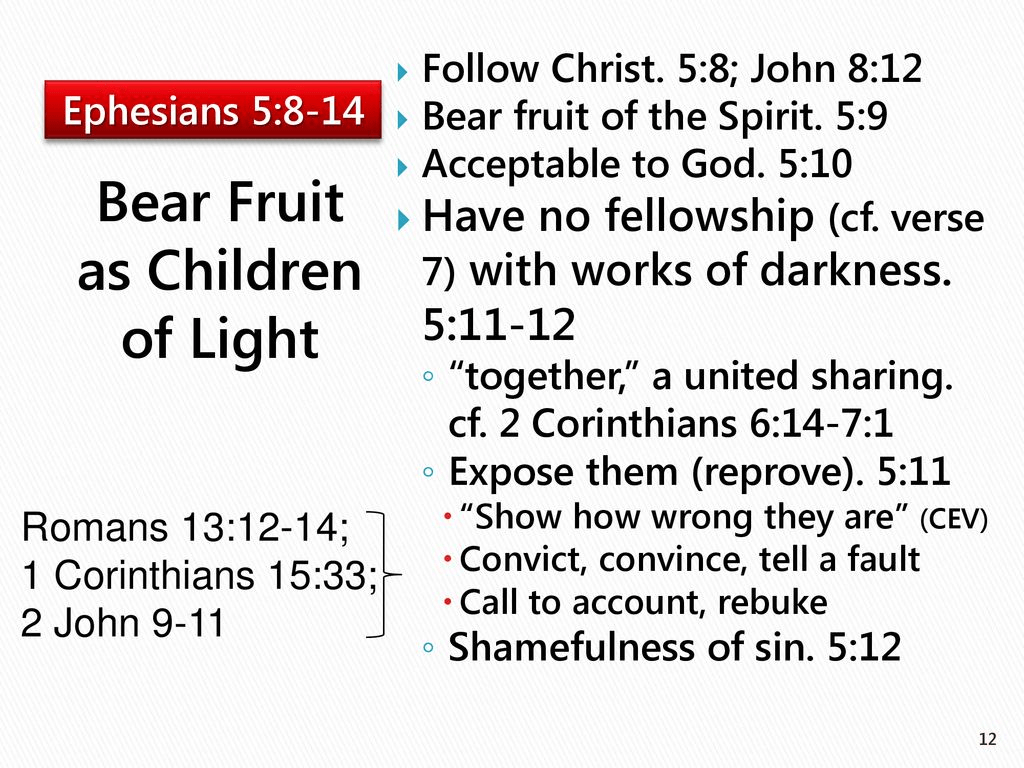4. 5:3-14 Walk as children of light, no longer in darkness