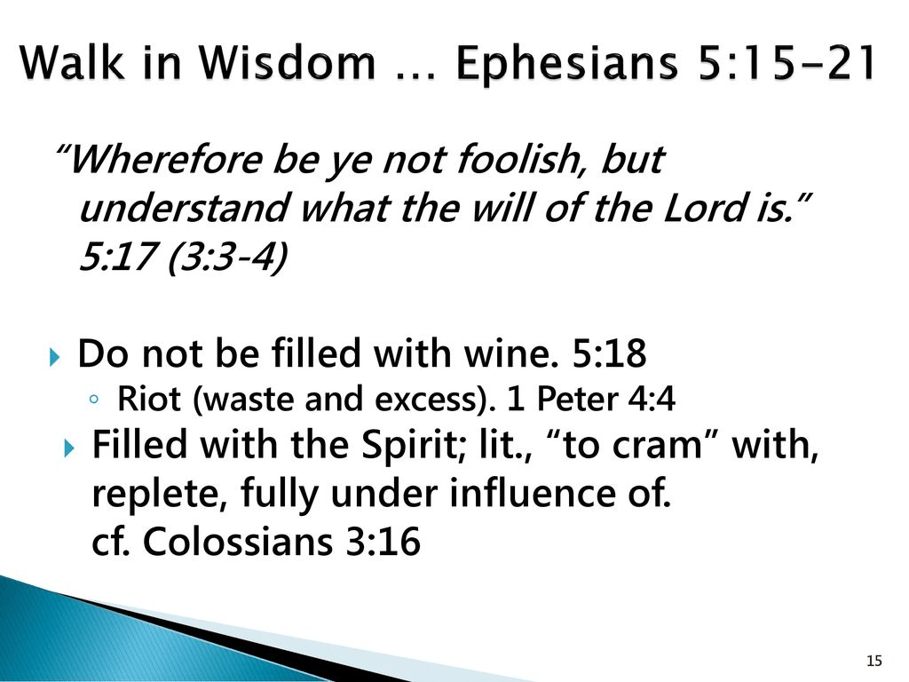Q: 4:18 Don’t be drunk with wine, but be filled with the Spirit.
