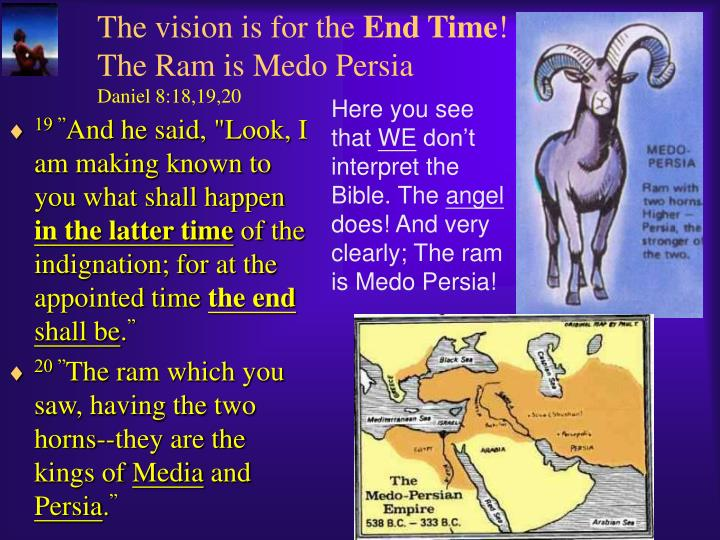 Ch 8: In the 3rd year of Belshazzar of Babylon. A vision and dream of Daniel.