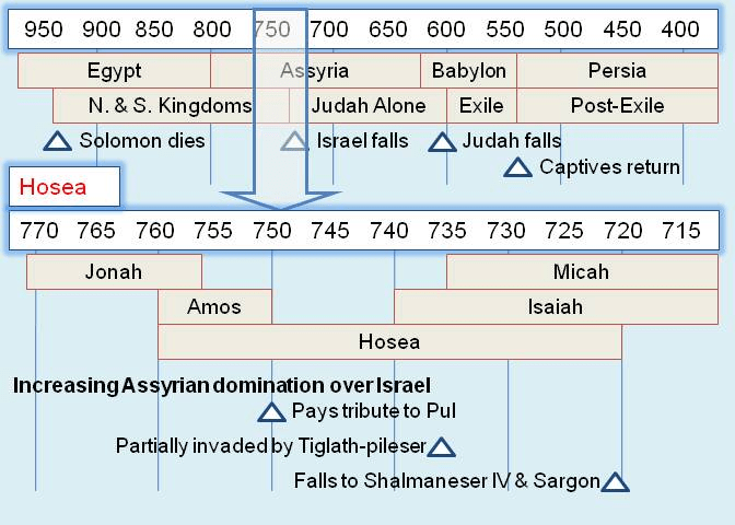 Hosea 1:1The word of the Lord that came to Hosea, the son of Beeri, in the days of Uzziah, Jotham, Ahaz, and Hezekiah, kings of Judah, and in the days of Jeroboam the son of Joash, king of Israel.” That would be Jereboam II (793-753 BC), the 13th king of Israel (no kin to Ahab). From https://www.julianspriggs.co.uk/pages/KingsOfIsrael “Jeroboam restored the land to the same boundaries as in the days of David and Solomon (14:25). He also had control over Damascus, as ordained by God and spoken through the prophet Jonah (14:27). During Jeroboam’s reign, Assyria had a succession of weak leaders. The peace brought economic prosperity and trade with Phoenicia.Hosea and Amos condemned the north for abandoning God and oppressing the poor. Ivory was used to build mansions. Some administrative documents have been found. Great quantities of oil was bought at low price from the farmers (Amos 6:6). These economic as well as the moral iniquities caused the decline of Israel.” During the reign of Mehahem (752-742 BC), the 16th king of Israel, Tiglath-pileser III (called Pul – 15:17) became one of the strongest rulers of Assyria.