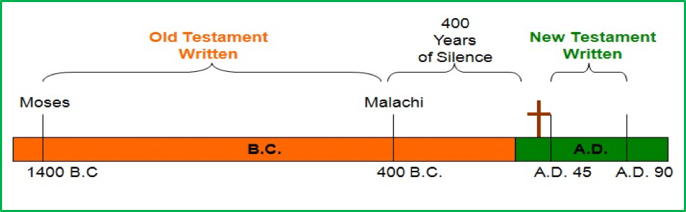 The book of the prophet Malachi was written around 430 BC. The entire history of the Old Testament is found in the first 17 books: Genesis through Esther. That history ends with the 3rd return of Judah from Babylonian captivity under Nehemiah to rebuild the walls of Jerusalem. The rest of the 39 books of the OT are writings of David, Solomon, the 5 major prophets, the 12 minor prophets, and the booik of Job. But all these occur chronologically within the time frame of the first 17 books, Genesis through Esther. The only exception to this is the book of Malachi, which some think even Malachi was written just before the return of Nehemiah. Here is a great chart: