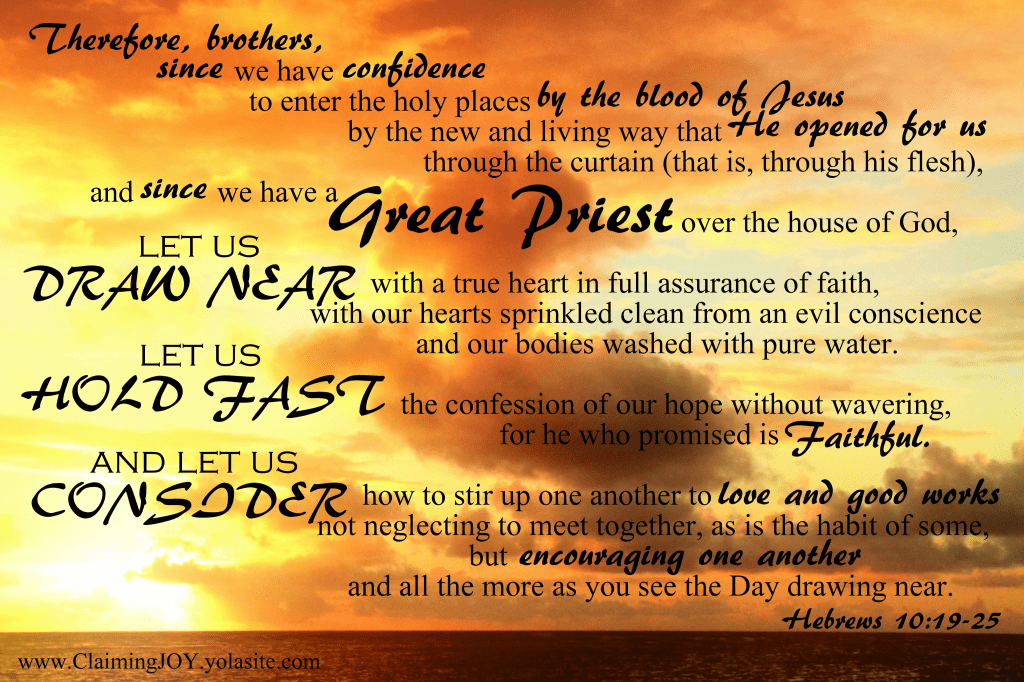 This is a great slide from ClaimingJoy.yolasite.com taken from Hebrews 10:19-25.