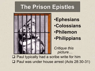 Date of Writing: The Book of Colossians was likely written between A.D. 58-62. The letter was part of the 4 “prison epistles” that Paul wrote during his 2 years of imprisonment (“house arrest”) in Rome at the end of his voyage to Rome when he appealed to have his trial before Caesar (the right of a Roman citizen, which he was).
